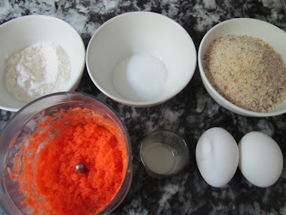 Hier als das Rezept für einen Karottenkuchen aus dem Buch „Backen mit Stevia“ von Brigitte Speck in meinen Worten.