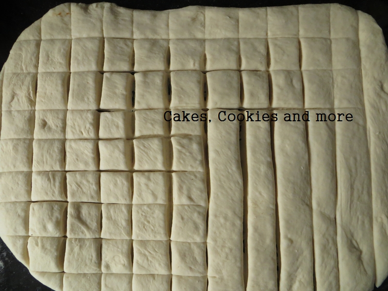 Alle Zutaten in eine Schüssel geben und miteinander verrühren, den Teig für ca. 15 Minuten kneten. (Ich lass den Teig kurz von der Maschine verrühren und knete ihn danach von Hand). Den Teig zugedeckt um das Doppelte aufgehen lassen. Das dauert 2 bis 3 Stunden.
