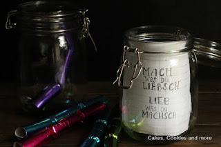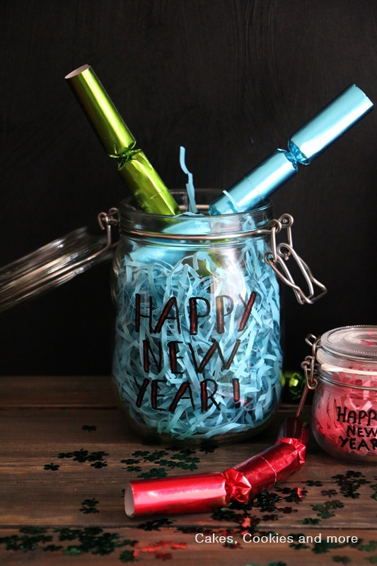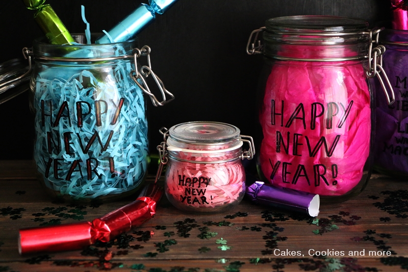 Die Gläser habe ich mit einem Porzellanstift beschriftet und mit verschieden Kleinigkeiten gefüllt. Je nach Grösse der Gläser hat es neben „Happy New Year!“ auch Platz für spezielle Wünsche oder Sprüche.