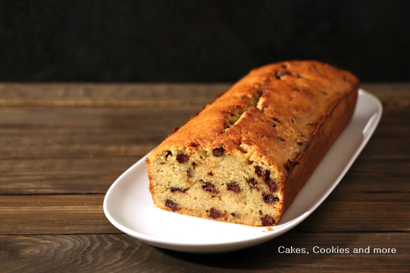 Butter mit dem Zucker weich rühren und eine Prise Salz zugeben. Ein Ei nach dem anderen zugeben und auf hoher Stufe rühren bis die Masse heller ist. Die Bananen mit einer Gabel zerdrücken und zusammen mit der Schokolade in die Masse rühren. Mehl und Backpulver mischen und mit einem Spachtel unter die Masse heben. In die vorbereitete Form geben und ca. 40 Minuten backen (Stäbchenprobe machen). Den Cake 10 Minuten in der Form auskühlen lassen, herauslösen und auf einem Gitter auskühlen lassen.