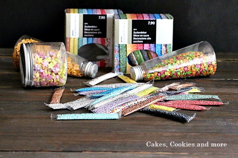 Einzigartige Zuckerstreuselmischungen können ganz einfach selbst gemischt werden. Dafür habe ich einfach verschiedene Zuckerdekors aus der Migros miteinander vermischt. Zum Beispiel in ähnlicher Farben, wie die grüne Mischung für die Tannenbäume.