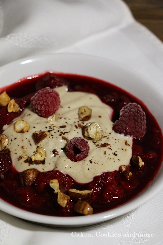 Rezept für Cashew Creme mit Zimt, Vanille und warmen Himbeeren