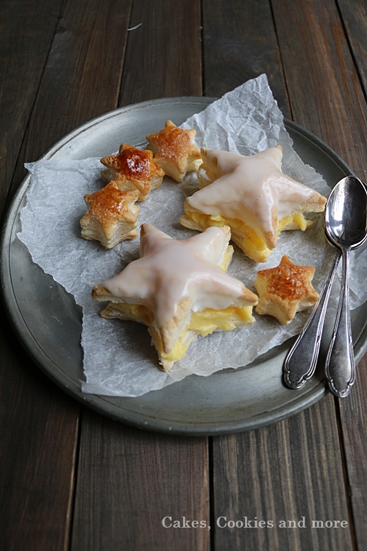 Vor dem Servieren, die Blätterteigsterne mit Crème Pâtissière füllen.