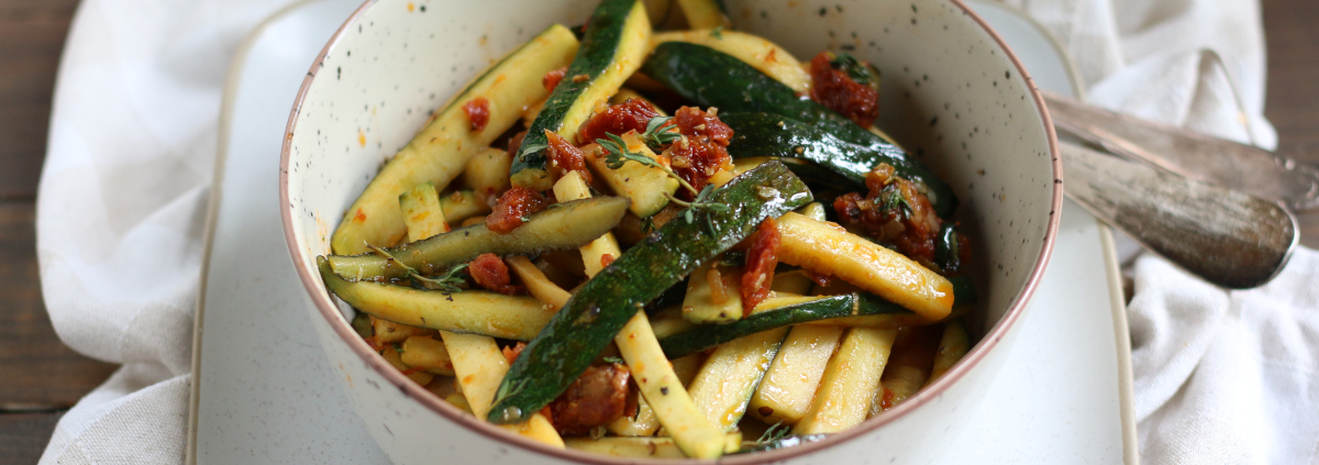 Lauwarmer Zucchini-Salat mit Dörrtomaten