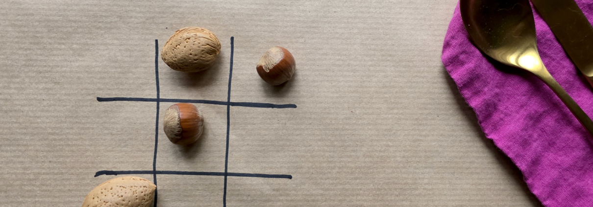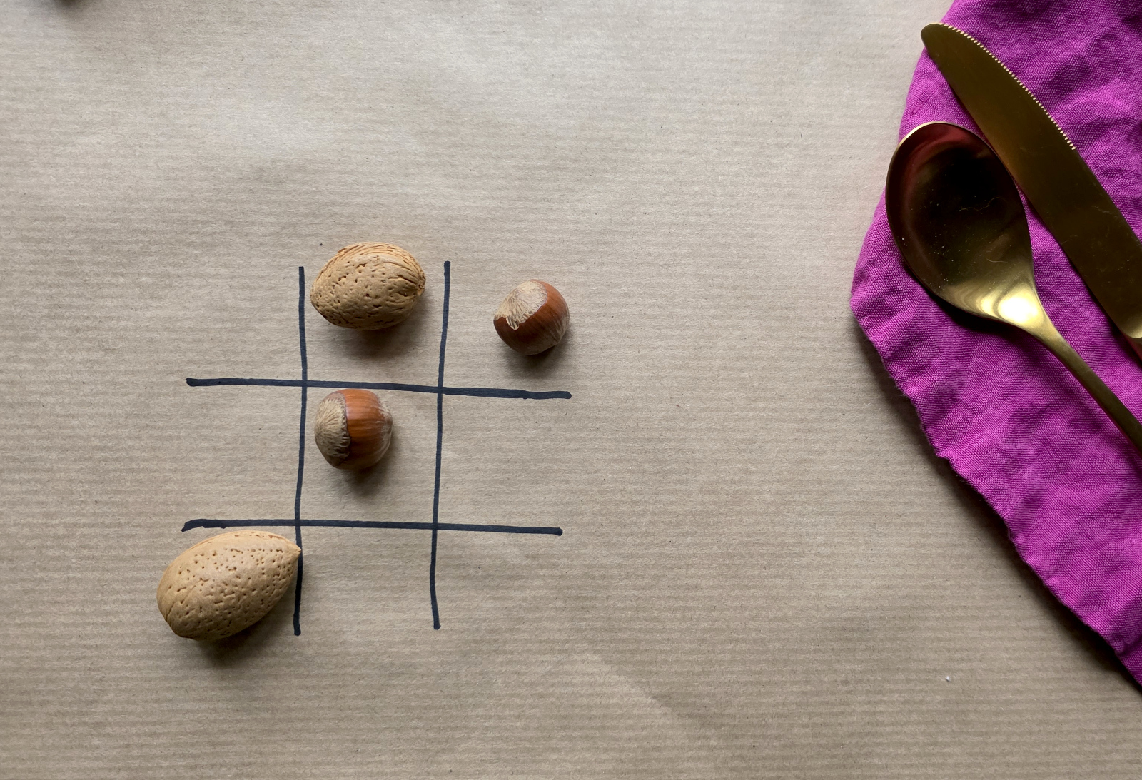 Das weihnachtliche Tik Tak Toe ist mehr als nur ein Dekoelement. Es schafft Nähe, regt zum Austausch an und sorgt für Lachen am Tisch. Es zeigt einmal mehr, dass es nicht viel braucht, um im Advent kleine Glücksmomente zu schaffen, manchmal genügt ein Stück Packpapier, ein paar Nüsse und die Freude am Spielen.