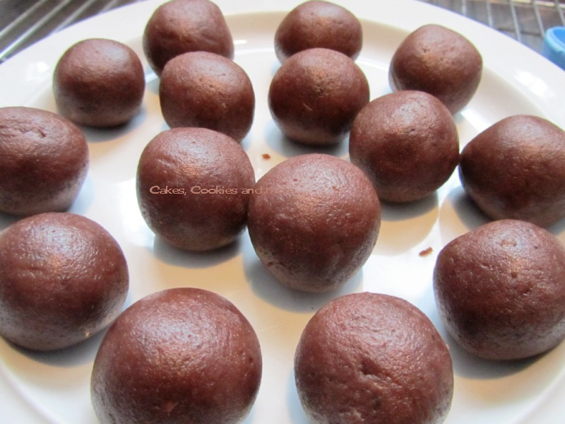 Die fertigen Kugeln gebe ich dann für ca. 30 Minuten in den Kühlschrank, damit sie etwas abkühlen können und so besser zusammen halten. In der Zwischenzeit kann man die Schokolade oder Candy Melts vorbereiten.